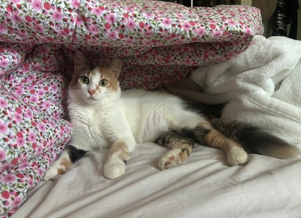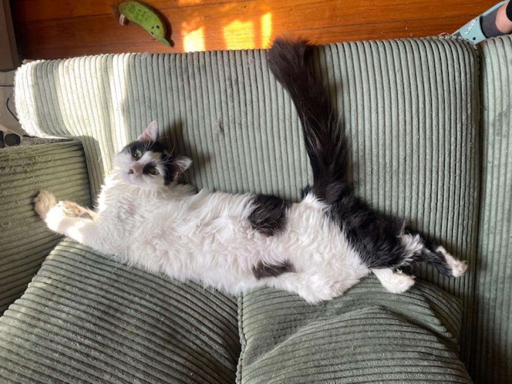 Artemis, aka Queen Artie, has been in her forever home now for about eight months and things are going super well. She has been a bright light in her parents' life, as she joined their home not long after their previous feline resident passed away at age 22. Artemis is so adorable and she knows it! She is great with her human brothers and there may even be a feline sibling in her future.