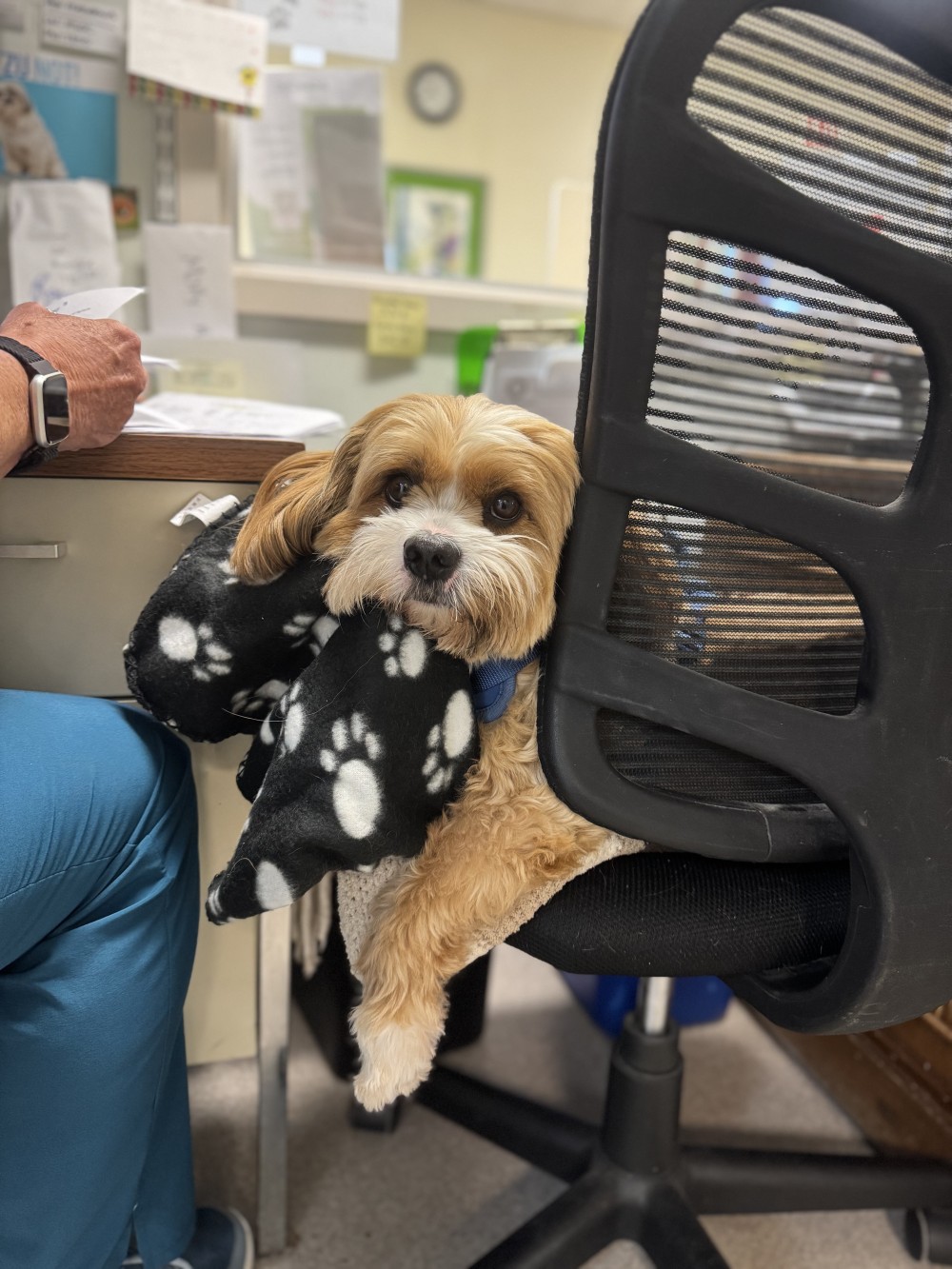 We are always so proud when one of our rescues goes on to have an illustrious career. So it is with great joy that we report Milo has been named Office Manager at the vet clinic at the Humane Society of Ocean City in NJ. He accompanies his mom to work every day and has his very own chair where he can greet pets and their owners. He brings much needed love and support to staff and clients. He even helps out at fundraisers and parties. When he has time off, he loves chasing squirrels and rough housing with his sister Bubbie , who's also a sato. Well done, Milo!