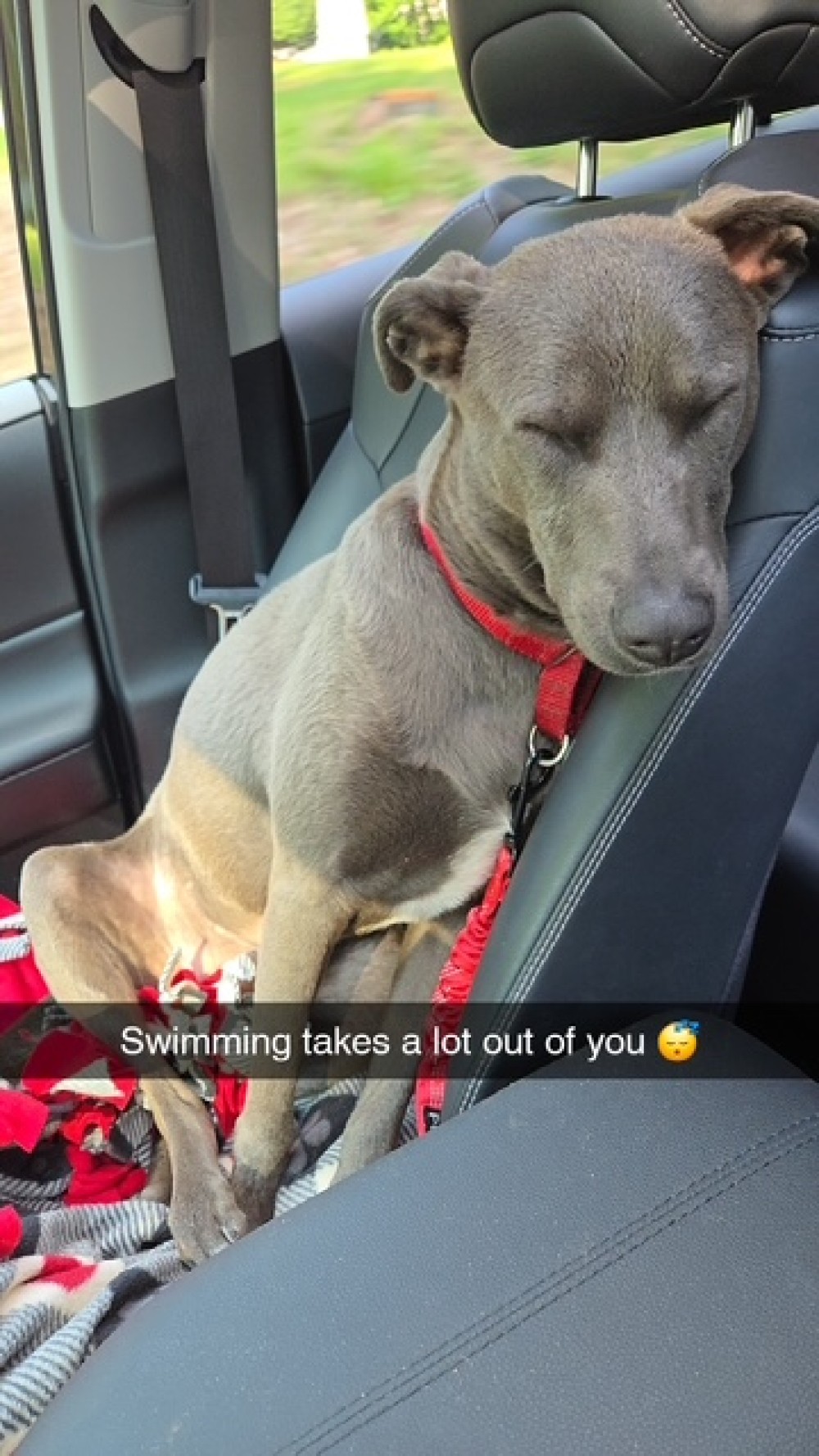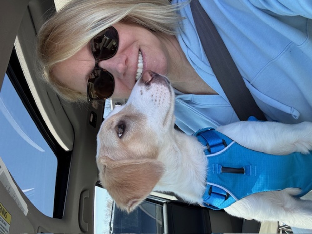 Wilfred just celebrated his three month anniversary in his forever home, thanks to Midcoast Humane in Brunswick, Maine. His new mom had recently lost her 18-year-old dog, so Wilfred's energy level and sharp teeth were a bit of a shock. (His nickname is "Baby Shark!") Wilfred started out sleeping in his crate, but quickly convinced his mom and three feline siblings that it would be much more fun to all bunk together. He's been hiking, on car rides, out boating, and swimming. He has a goofy personality and falls asleep in the car, just like a child. What a lucky boy!