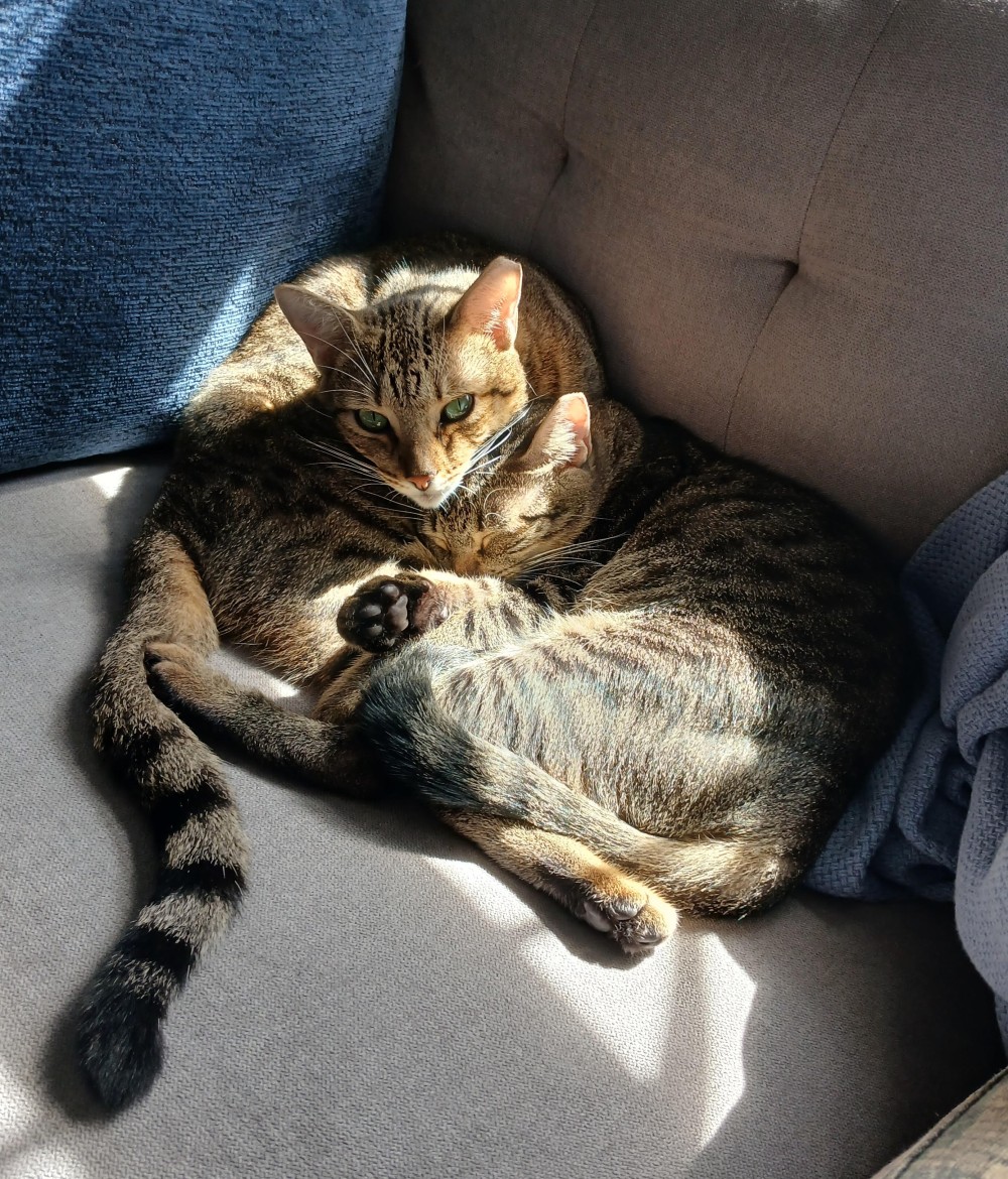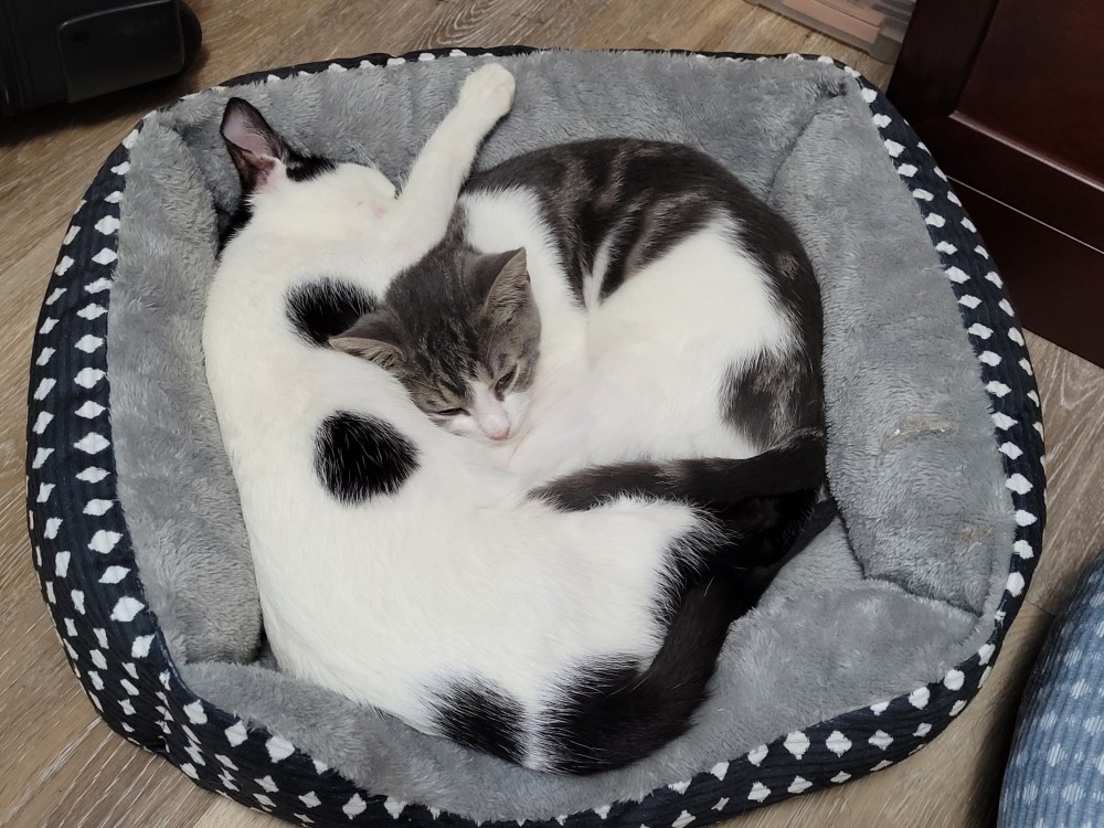 Rio and Rex (and, no, we don't know which is which!) were adopted together. They absolutely love to snuggle and love belly rubs. Rex is just over 14 lbs and Rio is just over 10 lbs. Rex is an absolute momma's boy and Rio loves his human brother. They do zoomies all over the place and absolutely love all the toys they have.
