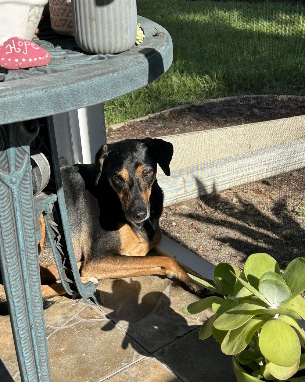 Enzo found his home through our partner in Brunswick Maine, Midcoast Humane. He is a sweet and gentle dog, who is much loved by his new family. He was first rescued by someone who found him tied up 24/7 in the full sun. These days Enzo prefers to spend his days on a porch enjoying a cool sea breeze. His first rescuer asked us to take care of him while they were away briefly---so we did. They never came back to claim him. But their loss is Enzo's new family's gain.