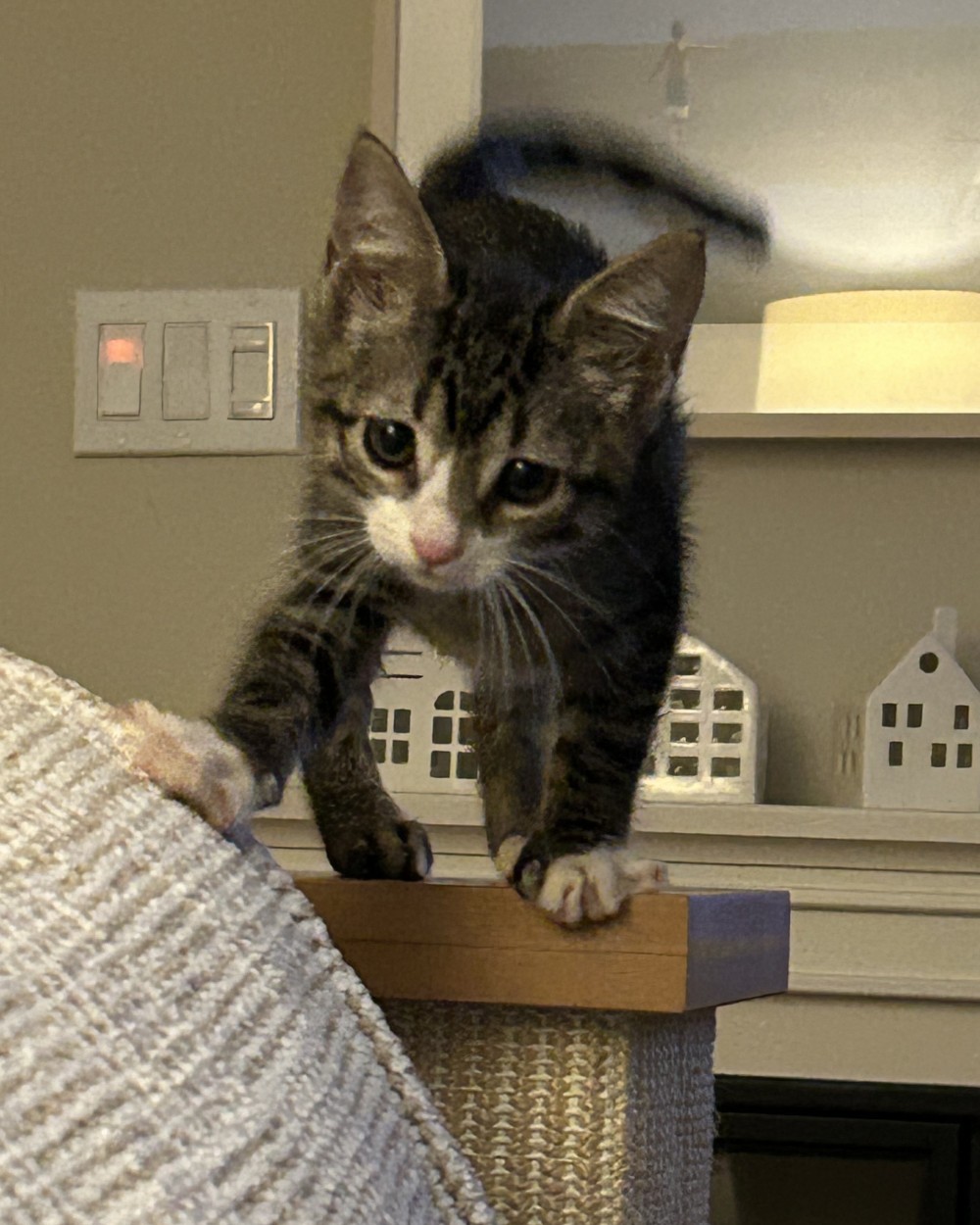 Nellie now lives with two big brothers: Finn (goldendoodle) and Theo (Maine coon cat). She loves to try to get Theo to play, but he's not so sure yet. Nellie was so tiny when she went to her new home but was confident, comfortable and purring up a storm! Nellie found her home through Cape Ann Animal Shelter in Gloucester, MA. Her new family says she is the perfect addition.