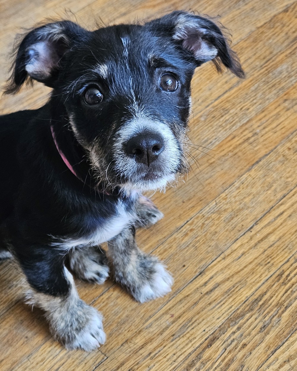Milka was adopted from Ark Animal Shelter in Cherryfield, Maine back in 2019--and we just heard from her person. He happened to be looking through her old adoption file and found our letter crumpled up among the documents. We were elated to hear that this pup has been thriving in Maine for all these years. She has been such an important addition to her family this whole time. Milka has feline and canine siblings, loves her naps and her outdoor adventures. Her DNA indicates that she is part husky, part mini poodle. Like most Satos, it turns out to be the PERFECT mix!